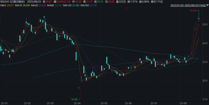 财报发布后次日,歌尔股份股价微涨0.64%至29.87元/股,总市值为1043亿元。